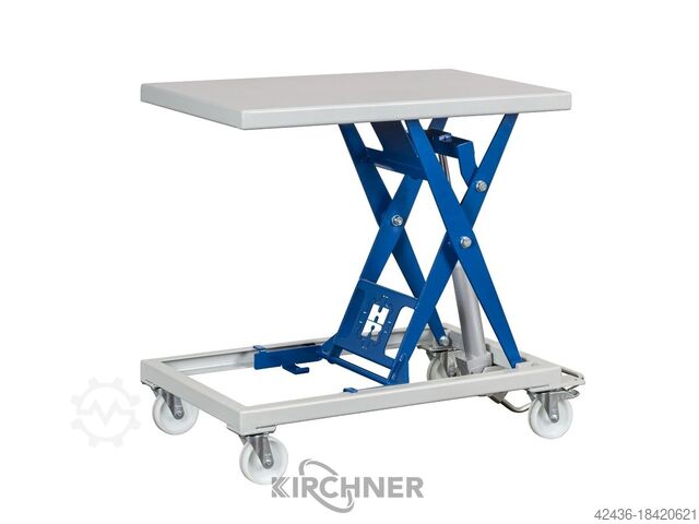 A mobile workstation with fast,individual height adjustment. About onePedal is operated the hydraulic unit,this is a stepless adaptation to thedesired working height the base frame can be differentWorktops are placed. Theseare fixed with 4 socket lift table has a steel worktop and willdelivered with 4 swivel castors, 2 of them are withParking hnical specifications:Load capacity: 300 kgWorking stroke: 610 mmConstruction height: 400 mmFrame: 970 x 590 mmTotal height: 1010 mmWeight: 135 kgRahmen: 970 x 590 mmGes. height: 1010 mmweight: 85 kg