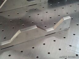 Quick positioning of the workpieces on a special magnetic worktop with hole pattern.